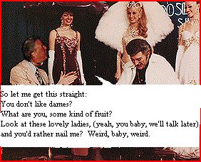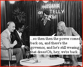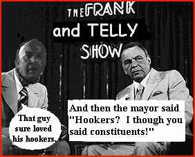 Television historians are uncovering more lost footage from this show every day. (Mountains of film are said to be stored somewhere in the basement of the Stardust) Hence, this page is constantly growing. Coming soon are some of the more famous segments (such as Frank and Telly's somewhat politically incorrect "Drinking and Driving Episode,") and "the lost stories," when the show would cut back from commercial too soon and one of the boys would be caught telling the often embarrassing end of a story. Until then, feel the velvet, baby.