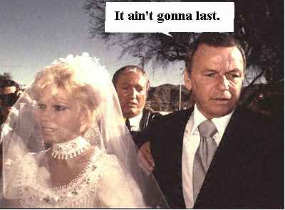 The audience was lucky enough to witness one of Frank's marriages on the air. The microphone picked up some of the happy newlywed's thoughts immediately following the ceremony. |